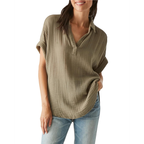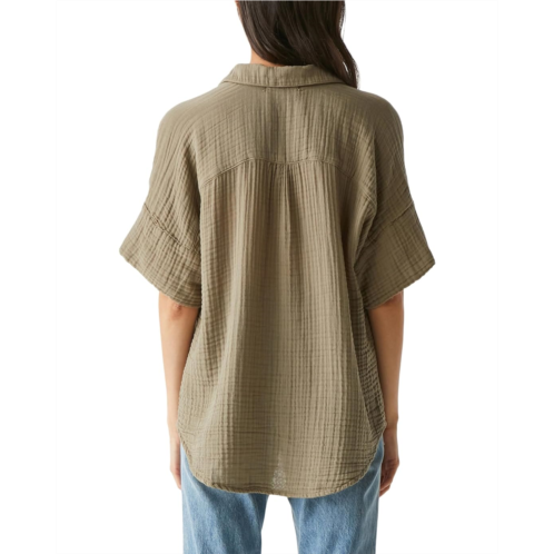 Keep things super relaxed yet stylish on your off-duty days by pairing up with the Michael Stars Gigi Popover Top. Designed in a lightweight, breathable, and textured gauze fabric, the top looks classy with its collared neck, short rolled sleeves, and a raw edge shirttail hem.