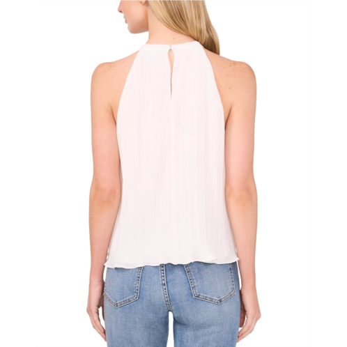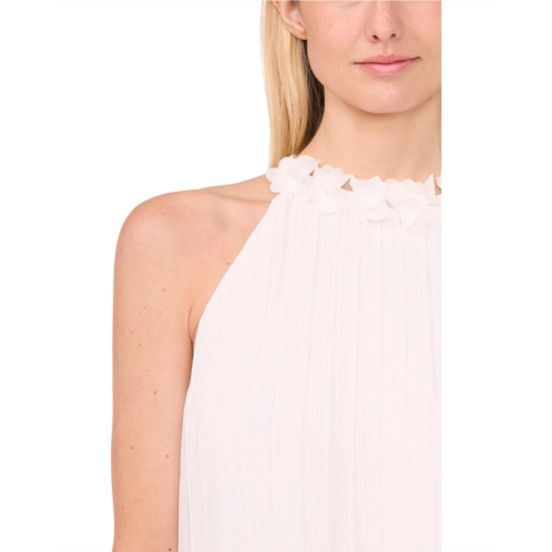 Flex your chic style wearing the CeCe Pleated 3D Floral Halter Neck Top. It features a halter neckline, sleeveless construction, three-dimensional floral detail, and allover pleated pattern.