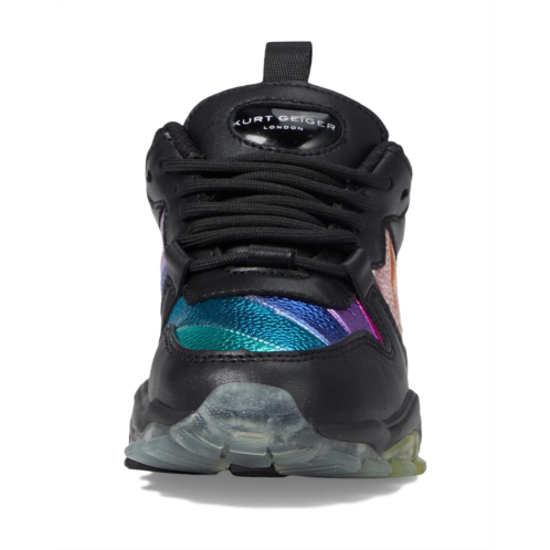 - Feel the difference of innovative style by wearing Kurt Geiger London Kids Mini Lettie Eagle shoes. The shoes have a round toe, padded tongue, and collar, with instep pull-tabs. It has an iconic diagonal rainbow-sewn stripe pattern. The shoes are made of laminated pebble-grain cow leather upper, textile lining, and insole.