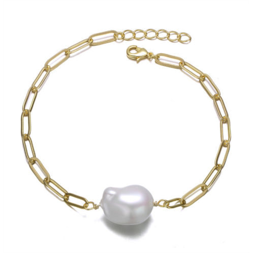 [US] Genevive sterling silver 14k gold plated with white freshwater pearl paperclip link bracelet