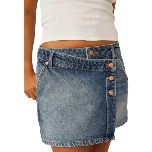 - Score style points wearing the chic Free People Wynne Denim Skirt. It features a mid-rise waist designed with belt loops and buttoned front closure. Perfectly layered with a cozy sweater or toughened-up with a graphic tee, this skirt is a true staple in your denim collection.