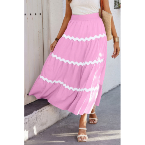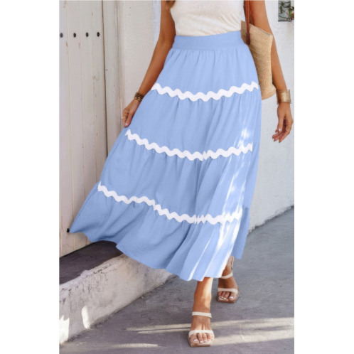 Bring playful movement and vibrant style to your wardrobe with this waves print pleated elastic waistband skirt. Crafted from a soft, lightweight blend of viscose, polyester, and polyamide, this skirt features an eye-catching waves print and graceful pleats that flow beautifully with every step. The comfortable elastic waistband ensures a flattering fit, making it perfect for casual outings, vacations, or sunny days. Easy to style with your favorite tops and sandals, this skirt offers a fresh, effortless look for any occasion.