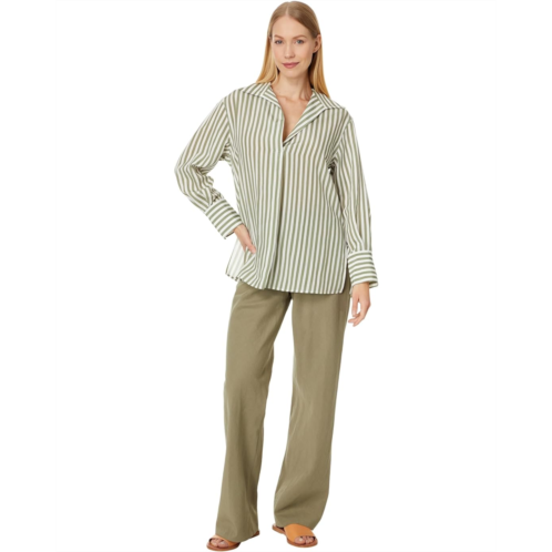 Exhibit your classic look donning the Vince Coast Stripe Shaped Collar Pullover. This relaxed-fit shirt features allover stripe print design, collared V-neckline, and long sleeves with buttoned cuffs.