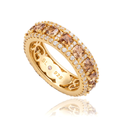 Discover the exquisite beauty of the Suzy Levian Sterling Silver Pink Sapphire Diamond Accent Eternity Band Ring, a stunning piece designed for the modern woman. This elegant eternity band features luxurious asscher-cut pink sapphires, prong-set between two rows of dazzling white pave created sapphires, all meticulously hand-set in high-quality 925 sterling silver. Each ring is a unique masterpiece, handmade to perfection, making it an ideal gift for anniversaries or special birthdays. The high-polished sterling silver enhances the vibrant colors of the sapphires, symbolizing a love that lasts forever. A hidden brown fancy diamond (.02 ct) is set inside the band, empowering women to embrace their inner strength. With a comfortable closed under-gallery and a two-tone finish showcasing Suzy Levian's signature logo, this ring is not just jewelry; it’s a statement of elegance and empowerment.
