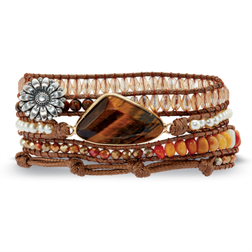 Embrace the exotic charm of bohemian style with this genuine brown tiger's eye wrap bracelet. Its neutral tones offer a versatile color palette suitable for every season. Featuring genuine agate accent stones and simulated pearls, this stylish accessory is an ideal gift for the free-spirited soul. Goldtone. 36 inch length, adjustable.