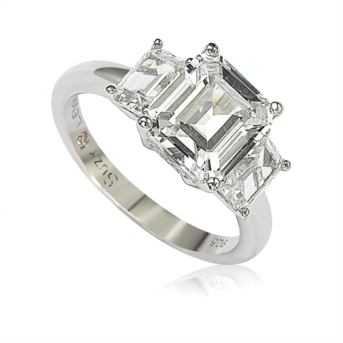 [US] Suzy Levian sterling silver emerald cut 3.50cttw cubic zirconia 3-stone engagement ring