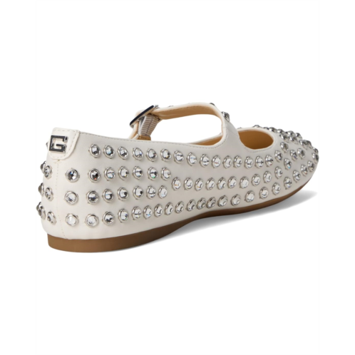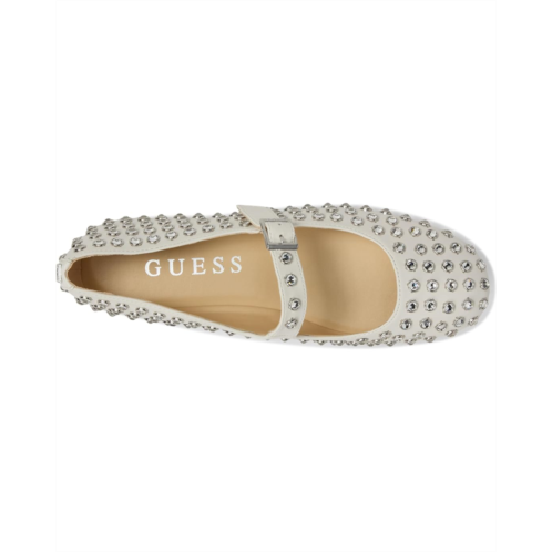 Add some sparkle to your step wearing the GUESS Gwkalidal. This Mary Jane style flat has an adjustable strap with rhinestone all-over detailing to add an elevated look to a classic silhouette. The low-top style features a faux leather upper, synthetic lining, padded insole, and synthetic sock.