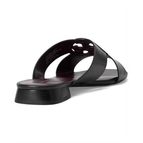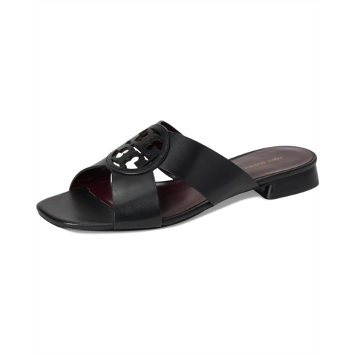- Featuring smooth leather straps that elegantly crisscross, the Tory Burch Miller Criss Cross Sandal is adorned with the iconic Tory Burch logo medallion for a signature touch. This slip-on footwear is designed with a cushioned footbed and a durable rubber outsole for enhanced traction.