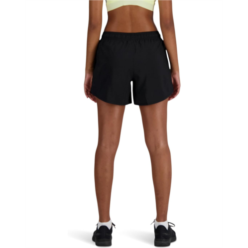 - Ace both sports as well as workout sessions in absolute style and comfort wearing New Balance Women's Sport Essentials Short 5'. The shorts are crafted with a NB DRYx premium fast-drying technology that wicks moisture away from your body. The breathable built-in liner offers lasting comfort all day long. The woven shorts feature an elasticated mid-rise waistband, two hand pockets, flying NB logo, a dolphin hem, and a short-length silhouette.