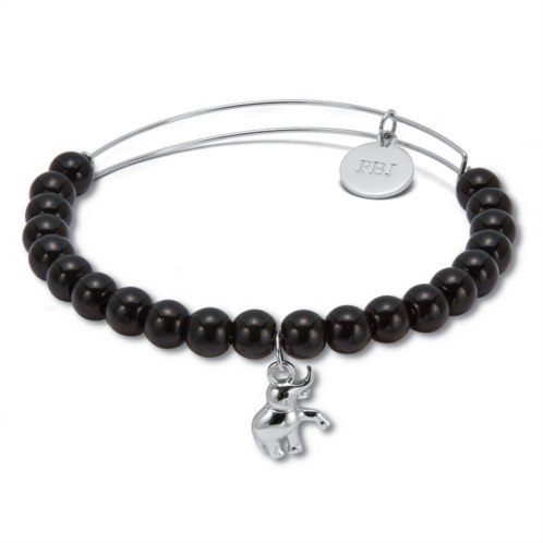 Infuse a touch of joy into every day with our natural black onyx bangle bracelet. Adorned with a playful elephant charm and 6mm onyx beads, this bracelet is sure to make you smile. Silvertone. 7.5 inches.