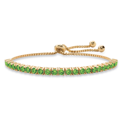 Display your birthstone or favorite color in vibrant style with this lovely drawstring bracelet. Featuring a row of round simulated birthstone crystals, it adjusts around your wrist in a trendy drawstring tennis design. The golden bead at each end dangles in cool style. It makes a great gift! 9.25' length. Yellow Gold-Plated.