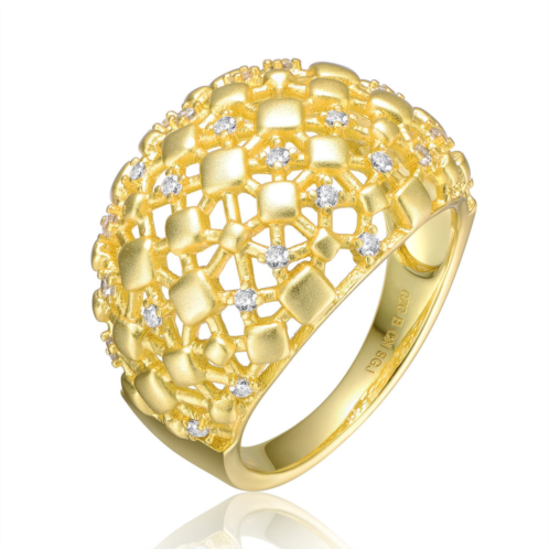 [US] Rachel Glauber rg 14k yellow gold plated with cubic zirconia dome-shaped textured nugget ring