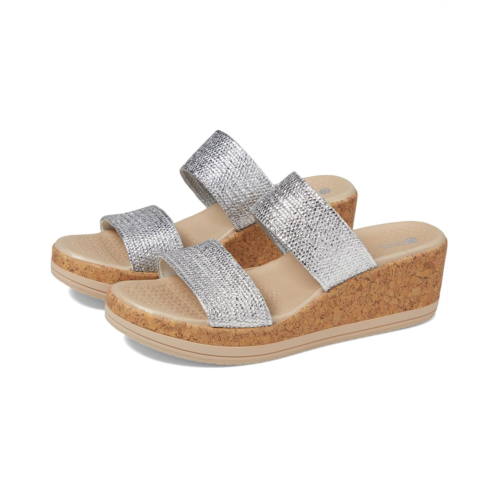 - Walk luxuriously in the platform heel simple design Bzees Resort sandals with dual upper straps.