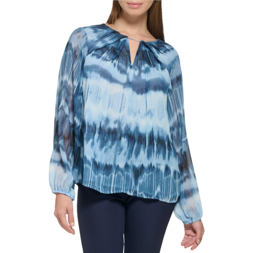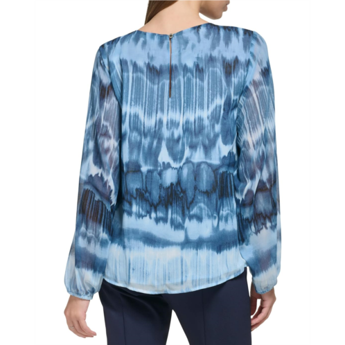Accentuate a stylish appeal everywhere you go wearing Calvin Klein Printed Shirred Front Long Sleeve Top.
