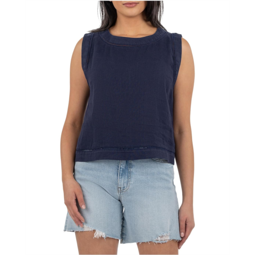 Style that speaks volumes - KUT from the Kloth Joanne Sleeveless Top. Designed in a regular fit with a sleek, modern silhouette, it features a chic boat neckline enhanced with a trim sandwich detail for an elevated twist. A keyhole back adds just the right touch of allure, while the pull-on design keeps things easy-breezy. Sleeveless for endless layering or sun-soaked styling, and cropped to perfection, this top pairs seamlessly with high-rise denim, flowy skirts, or tailored shorts.