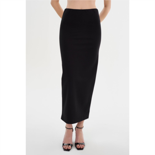 The HELLANDA Knit Midi Skirt is the ultimate blend of comfort and effortless style. With its slip-on design and elasticated waist, it hugs your silhouette with ease, while a back slit adds a hint of allure to your stride. Crafted from a soft, stretchy Ponte knit blend, this unlined skirt offers just the right amount of structure for a flattering, streamlined look perfect for pairing with your favourite layers, from cozy sweaters to sleek blouses.