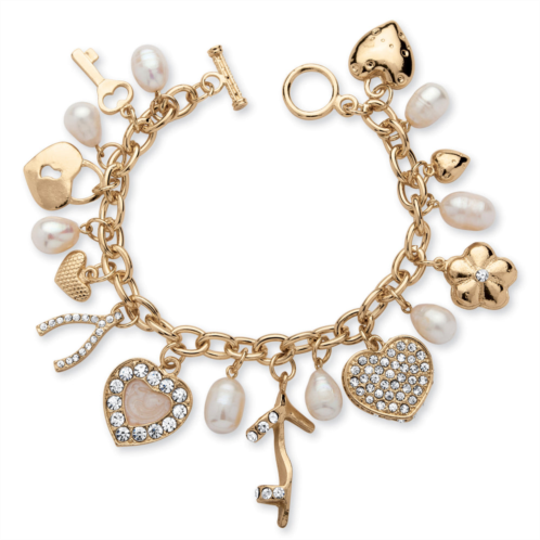 [US] Palm Beach Jewelry fashion cultured freshwater pearl crystal charm bracelet in yellow goldtone