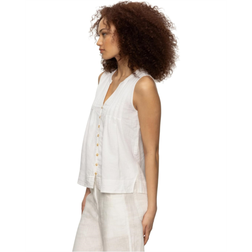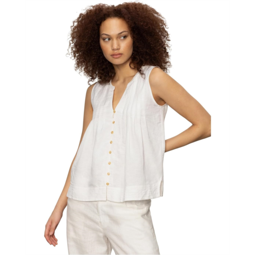 Effortlessly chic and endlessly wearable - meet your new warm-weather go-to: the Sanctuary Harmony Tank. Designed with a modern classic fit, this sleeveless staple features a flattering V-neck and elegant pleat details at the chest that add subtle texture and visual interest. The button front design gives it a timeless twist, while the easy pull-on style keeps things comfy and carefree.