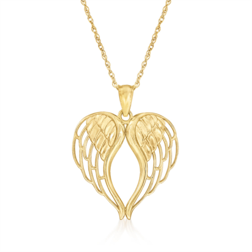 Ross-Simons travels the world to find beautiful, high-quality styles at the best prices. Signifying love and protection, our diamond-cut and polished 14kt yellow gold pendant necklace is sculpted in the shape of a heart by beautiful angel wings. Suspends from a rope chain with a 2' extender. Springring clasp, angel wings heart pendant necklace. Necklace drop length - 7/8 inch long. Necklace drop width - 3/4 inch wide. Each Ross-Simons item arrives in a fine jewelry presentation box. Shop Ross-Simons jewelry risk-free as all items include a 30-day, 100% money-back guarantee.