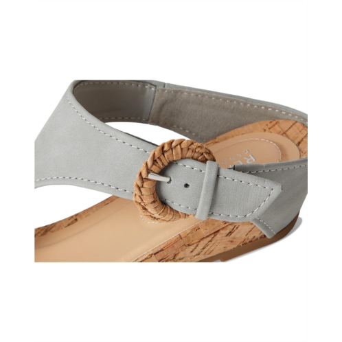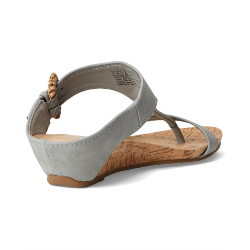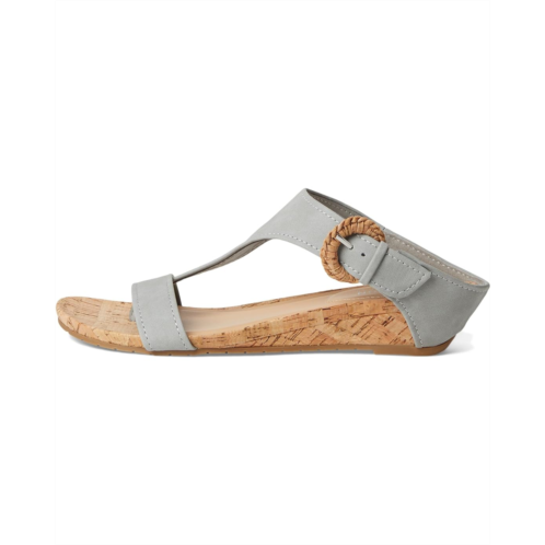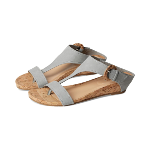 The Kenneth Cole Reaction Great Buckle is a T-strap wedge sandal with comfortable footbed, buckle detail, and wedge heel. This slip-on footwear features faux suede upper construction and an open almond toe silhouette.