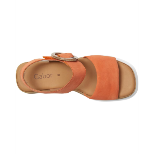 - Step into the Gabor Gabor 64.520 slide sandals with adjustable hook-and-loop strap and a faux buckle for secure, stylish wear. The leather-lined interior, faux leather insole, and a copped heel footbed with excellent arch support guarantee ultimate comfort. These heeled sandals are made of a leather upper and faux leather lining. Match your casual styles and chic dresses with these leather sandals.