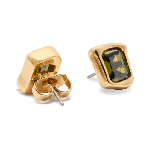 - Shine bright donning these captivating Kate Spade New York Molten Glass Studs. Crafted with radiant brass and shimmering cubic zirconia material and features post-back closure for a secure, comfortable fit.