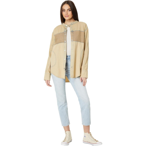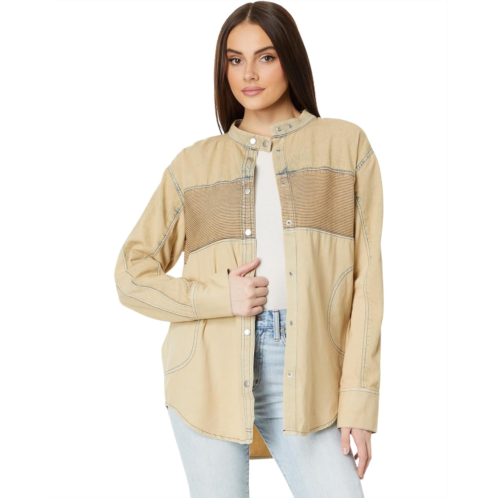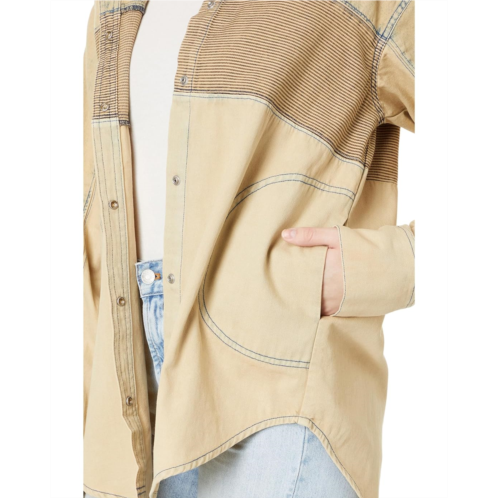 Activate your fashion sense donning the Free People Moto Color Block Shirt. This oversized silhouette features snap-buttoned front closure, long sleeves with buttoned cuffs, and shirttail hemline.