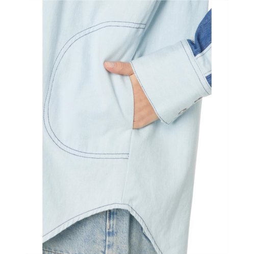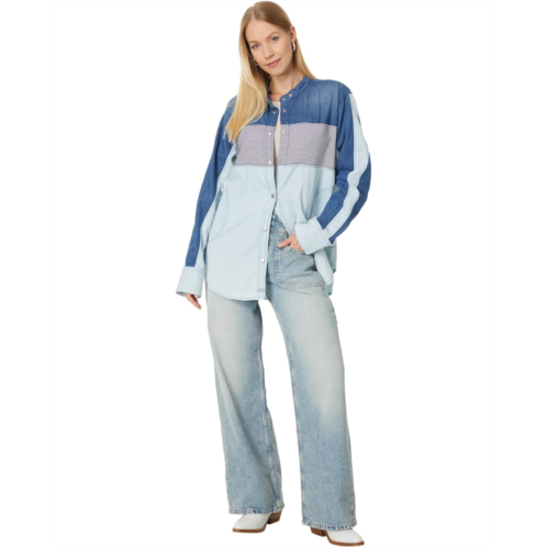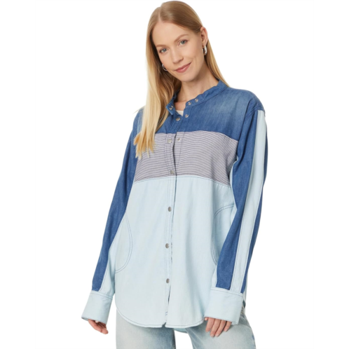 Activate your fashion sense donning the Free People Moto Color Block Shirt. This oversized silhouette features snap-buttoned front closure, long sleeves with buttoned cuffs, and shirttail hemline.