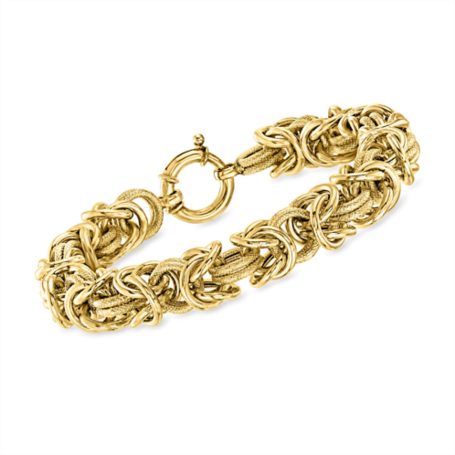 A top-rated jeweler since 1952, Ross-Simons travels the world to find high-quality styles at the best prices. Our bold bracelet boasts a beloved style -- classic Byzantine links are handcrafted in 18kt yellow gold over sterling silver with textured and polished finishes. Springring clasp, 18kt gold over sterling Byzantine bracelet. Each Ross-Simons item arrives in a fine jewelry presentation box. Shop Ross-Simons jewelry risk-free as all items include a 30-day, 100% money-back guarantee.