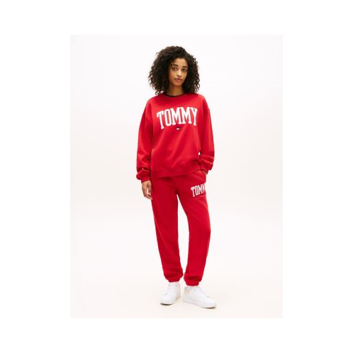 Tommy Hilfiger women's pant. Made from soft, brushed-back fleece with a smooth feel, these sweatpants are super comfortable. This iteration is designed with a varsity-inspired Tommy logo.