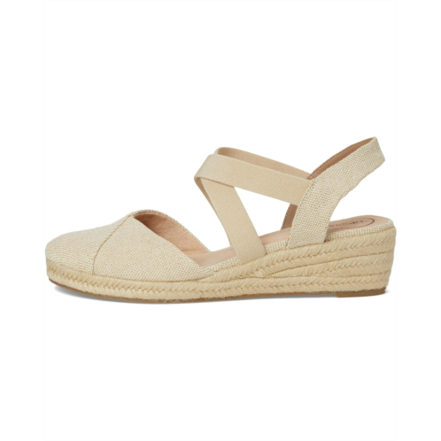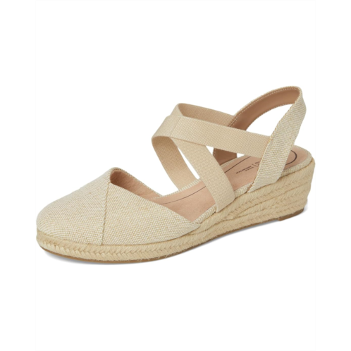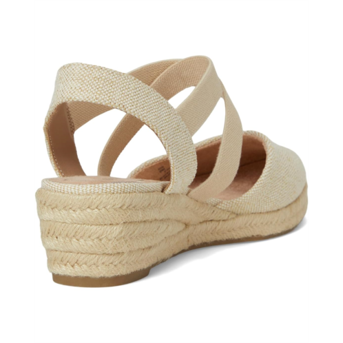 From boardwalk to brunch: LifeStride Kimball women's espadrille wedges are the perfect blend of style and comfort. Featuring a chic canvas fabric upper with a fresh almond toe design, these slip-on shoes are your perfect blend of classic elegance and modern comfort. Designed with crisscrossing stretch gore straps for easy on/off and a jute-wrapped wedge heel, they offer effortless style for any occasion. Thanks to the Trusted Soft System comfort technology, enjoy all-day cushion, support, and flexibility, along with superior shock absorption and pressure distribution. The partially recycled synthetic rubber lining and EVA insole enhance durability, while the traction PU outsole ensures stability.
