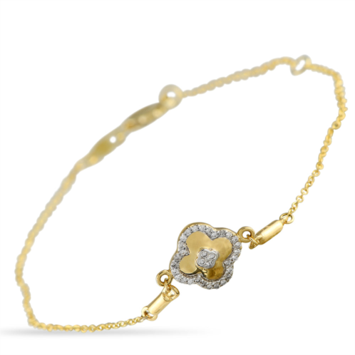 This 14K Yellow Gold bracelet is classically elegant. At the center, a quatrefoil motif is elevated by 0.10 carats of sparkling Diamonds. It measures 7.25 long and is understated enough for everyday wear.This jewelry piece is offered in brand new condition and includes a gift box.