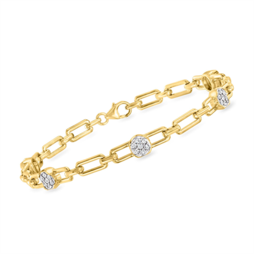 Ross-Simons is the authority on luxury classics. Wrap your wrist with sunny shine and sparkle. Dazzling clusters of 0.50 ct. t.w. round brilliant-cut diamonds are stationed on a paper clip link chain, crafted in 18kt yellow gold over sterling silver. Lobster clasp, diamond cluster paper clip link bracelet. Each Ross-Simons item arrives in a fine jewelry presentation box. Shop Ross-Simons jewelry risk-free as all items include a 30-day, 100% money-back guarantee.