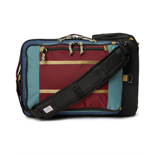 - Your ideal one-bag travel companion, the Topo Designs Global Travel Bag offers 3-way carry (backpack straps, shoulder strap, and grab handles) options, plenty of internal organization, expandable side water bottle pockets, and an external laptop sleeve for easy access. The foam structure with padded recycled ballistic nylon back panel offers added comfort. This travel bag offers a U-shape entry to the large main compartment. The size of the bag is perfect for a long weekend getaway. Carry-on compliant and machine washable, this bag is crafted from soft shell nylon fabric that makes it durable to withstand wear and tear.