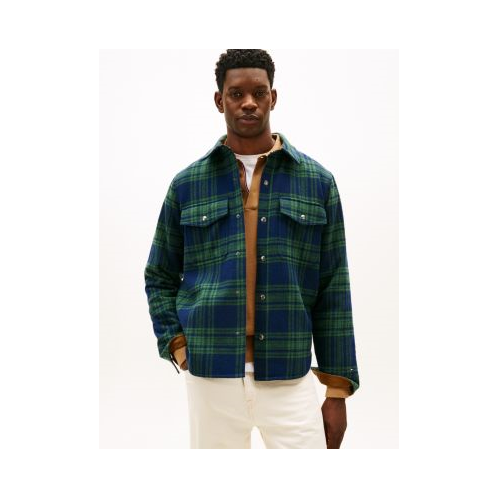 Tommy Hilfiger men's jacket. Our wool-blend shirt jacket is designed with padding for extra warmth. Finished in a seasonal plaid print, it's a versatile layering piece for the colder months.