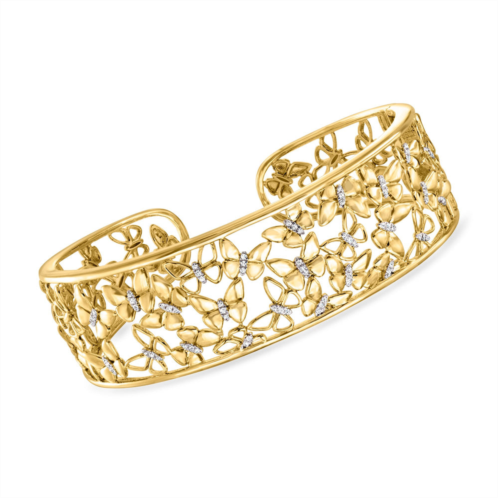Established in 1952, Ross-Simons presents contemporary styles with a timeless appeal. Bring some springtime sparkle to your everyday styles. Our sweet cuff bracelet flutters with an arrangement of butterflies in an airy open-space design, decorated by 0.25 ct. t.w. round diamonds. Crafted in 18kt yellow gold over sterling silver. Slip-on, diamond butterfly cuff bracelet. Each Ross-Simons item arrives in a fine jewelry presentation box. Shop Ross-Simons jewelry risk-free as all items include a 30-day, 100% money-back guarantee.