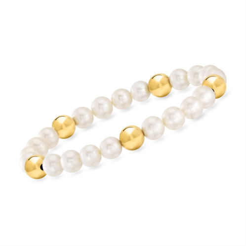 Ross-Simons is the authority on fashionable must-haves. Who says stretch bracelets can't be stylish? Our easy accessory will be your go to for busy days when you're flying out the door. Features pretty 7-7.5mm cultured freshwater pearls and sunny 8mm 14kt yellow gold spacer beads. Slip-on, white pearl and 14kt yellow gold bead stretch bracelet. Each Ross-Simons item arrives in a fine jewelry presentation box. Shop Ross-Simons jewelry risk-free as all items include a 30-day, 100% money-back guarantee.