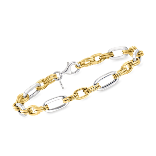 [US] Ross-Simons italian sterling silver and 18kt gold over sterling alternating cable and paper clip link bracelet
