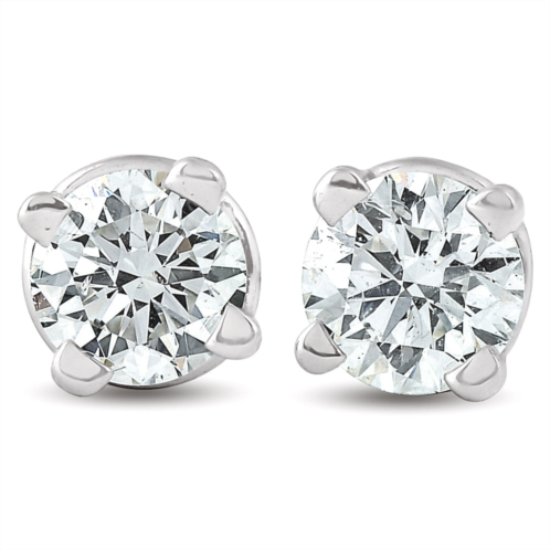 This pair of round brilliant cut diamonds are prong set in 14k white gold. Both earrings include push backs for comfortable wear.