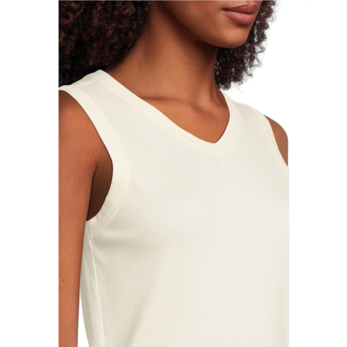 Brightside High V Tank. This top features high V-neckline, sleeveless style, regular fit, and pull-on style.