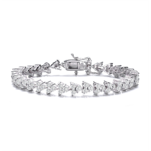 [US] Genevive sterling silver white gold plated with clear round cubic zirconia 3-stone triangular link bracelet
