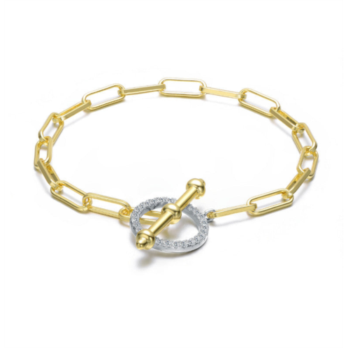 [US] Rachel Glauber two-tone with clear cubic zirconia toggle clasp link bracelet