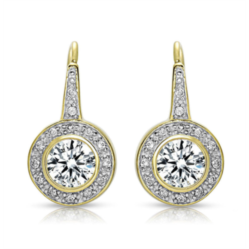 [US] Rachel Glauber halo dangle earrings with bezel set round cubic zirconia