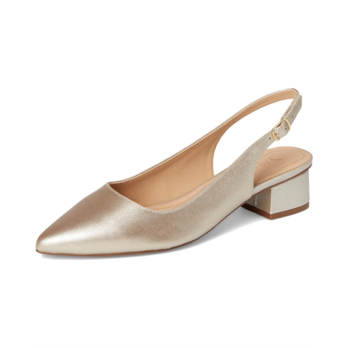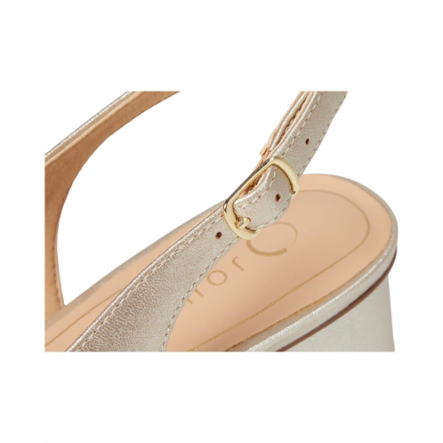 - Slingback strap with adjustable buckle closure.