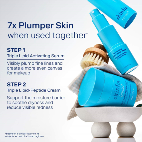 - 7x the plumping effect when using barrier+ Triple Lipid Activating Serum and barrier+ Triple Lipid-Peptide Cream together