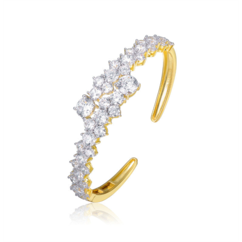 [US] Genevive sterling silver 14k gold plated with clear cubic zirconia bypass cuff bracelet