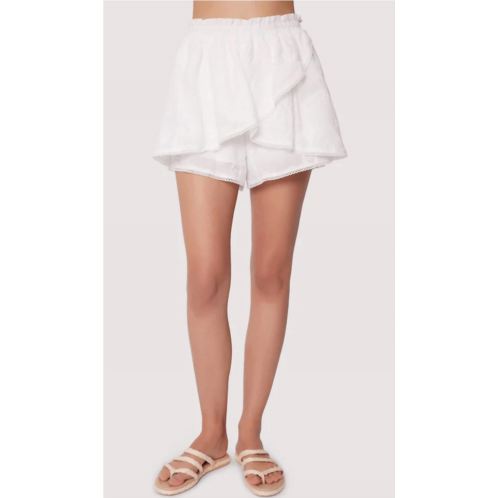 The go-anywhere and do-anything skort that you'll love to live in.Elevate your summer wardrobe with the Freesia Whisper Skort by LOST + WANDER, perfect for embracing a playful spirit. This solid white mini skort features a whimsical ruffle detail and is made from 100% cotton for soft, breathable comfort. Designed with a pull-on closure and imported craftsmanship, this versatile piece is ideal for vacation occasions with a boho chic flair. For care, hand wash or use a gentle cycle with cold water, followed by air drying to prevent shrinkage.