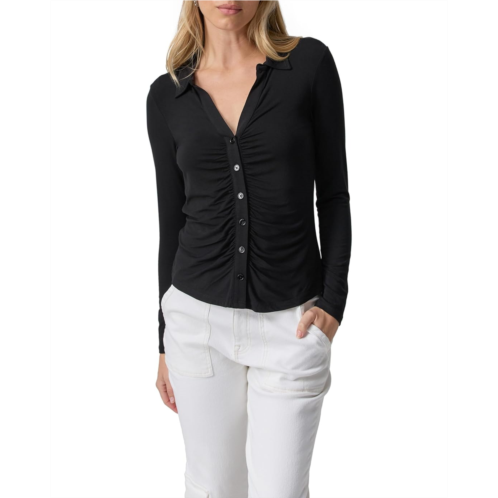 - The Sanctuary Dreamgirl Button-Up is a casual top with front ruching detail. Made from rayon blend fabric, it offers superior comfort and stretch. This button-down top is styled with long sleeves, a collared neckline, and a straight hem. Stylish and comfortable, this ruched top is perfect to pair with casual and formal looks.