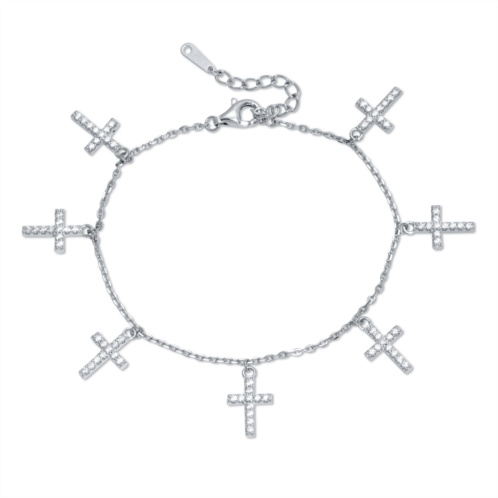 [US] Palm Beach Jewelry 5.39 tcw cubic zirconia cross charm sterling silver bracelet