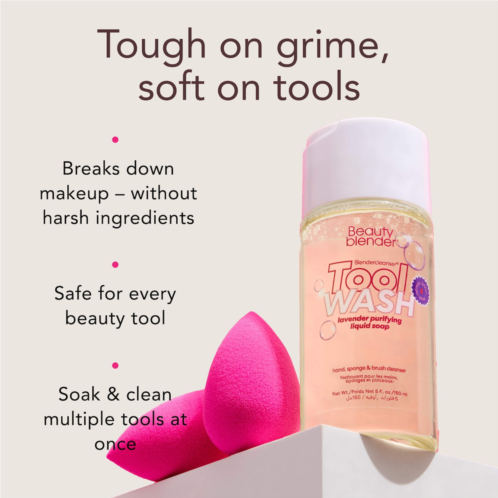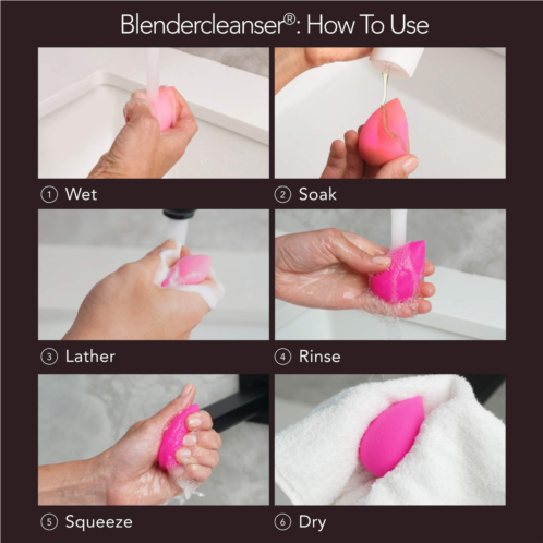 This cleanser supports the integrity of the Beautyblender as it removes excess residue and germs for a clean makeup application. The cleanser’s soothing soy-based, low-suds formula breaks down rapidly making it earth-friendly, while the light lavender scent makes it fun to use.